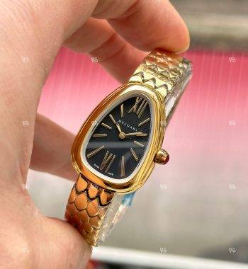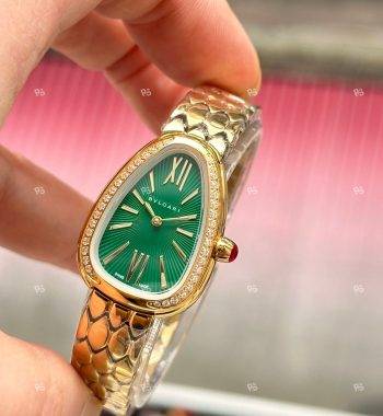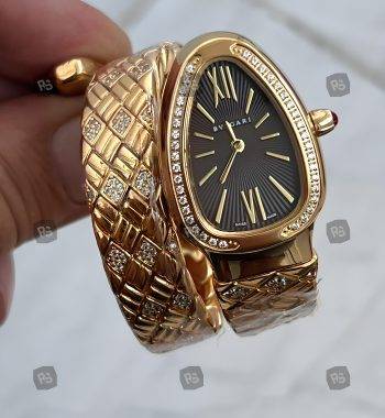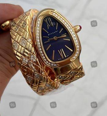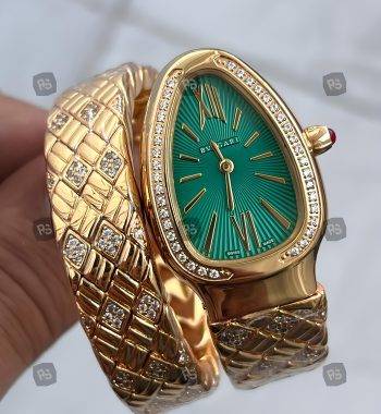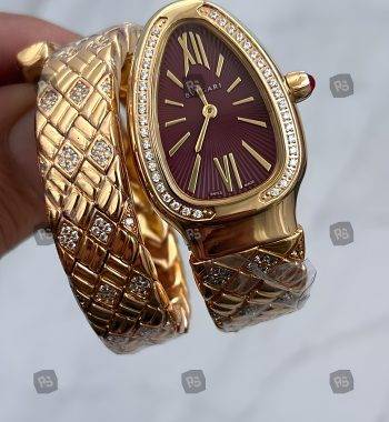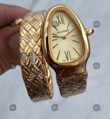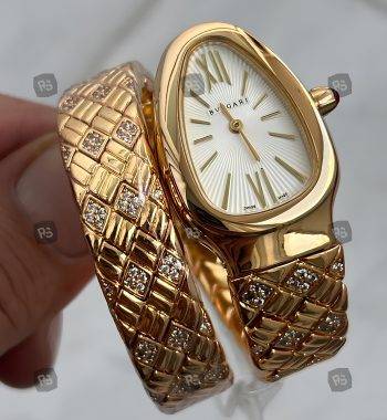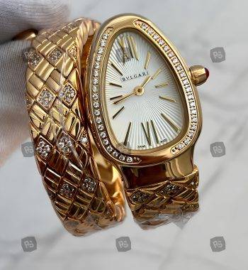 Bvlgari Serpenti Yılan Modeli Gold Renk 3 Sarmal Taşlı Bezel Beyaz Kadran Kadın Kol Saati