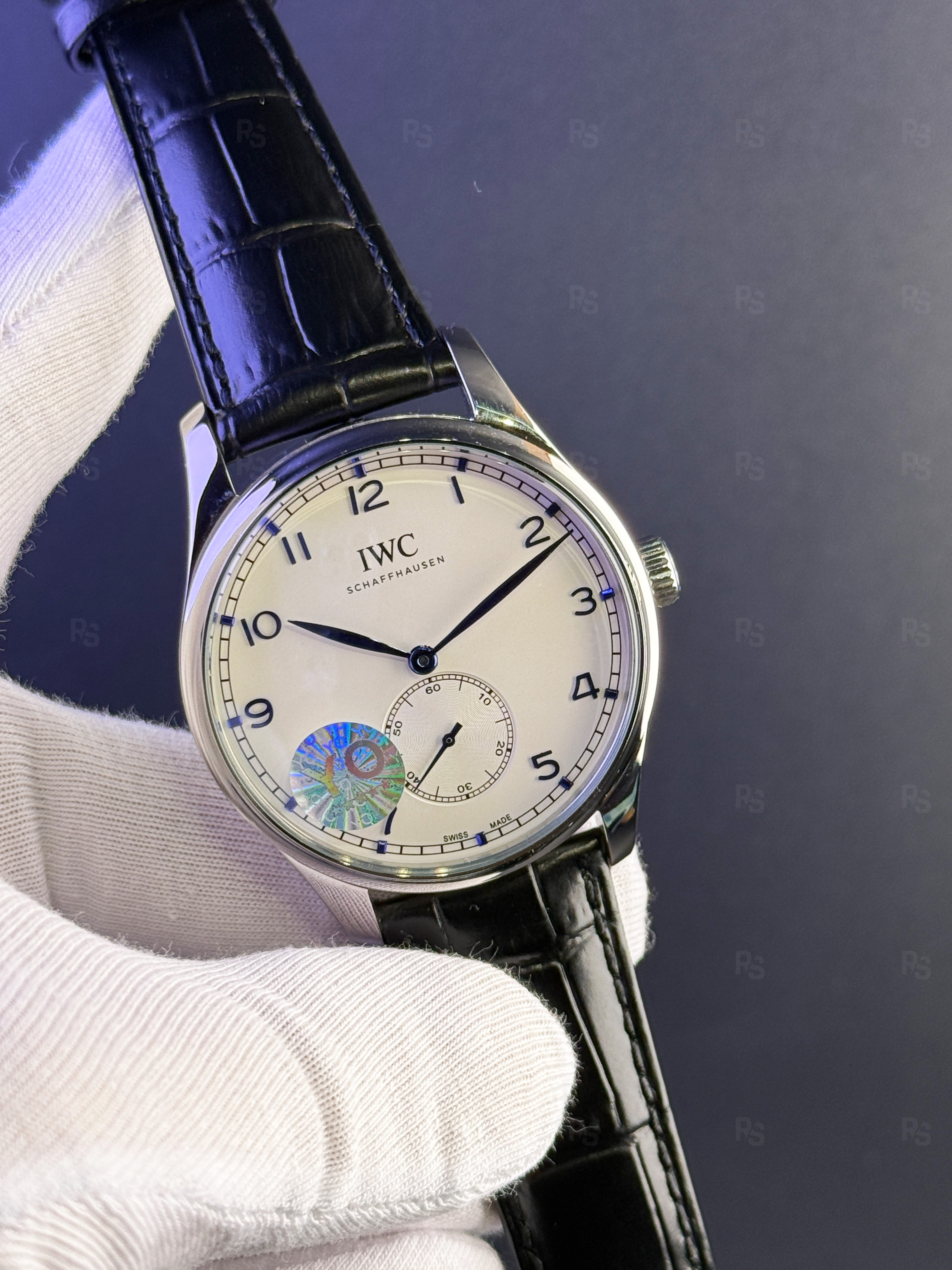 Bu Premium Edition saat, IWC Schaffhausen’in en özgün modellerinden biri olan Portugieser Classic’i dikkatle canlandırır. 44mm çapındaki kasa, erkek bileklerine dengeli ve zarif bir uyum sağlar. Beyaz guilloché kadran, siyah işaretleme ve siyah deri kordon kombinasyonuyla saf, temiz ve modern bir lüks sunar.