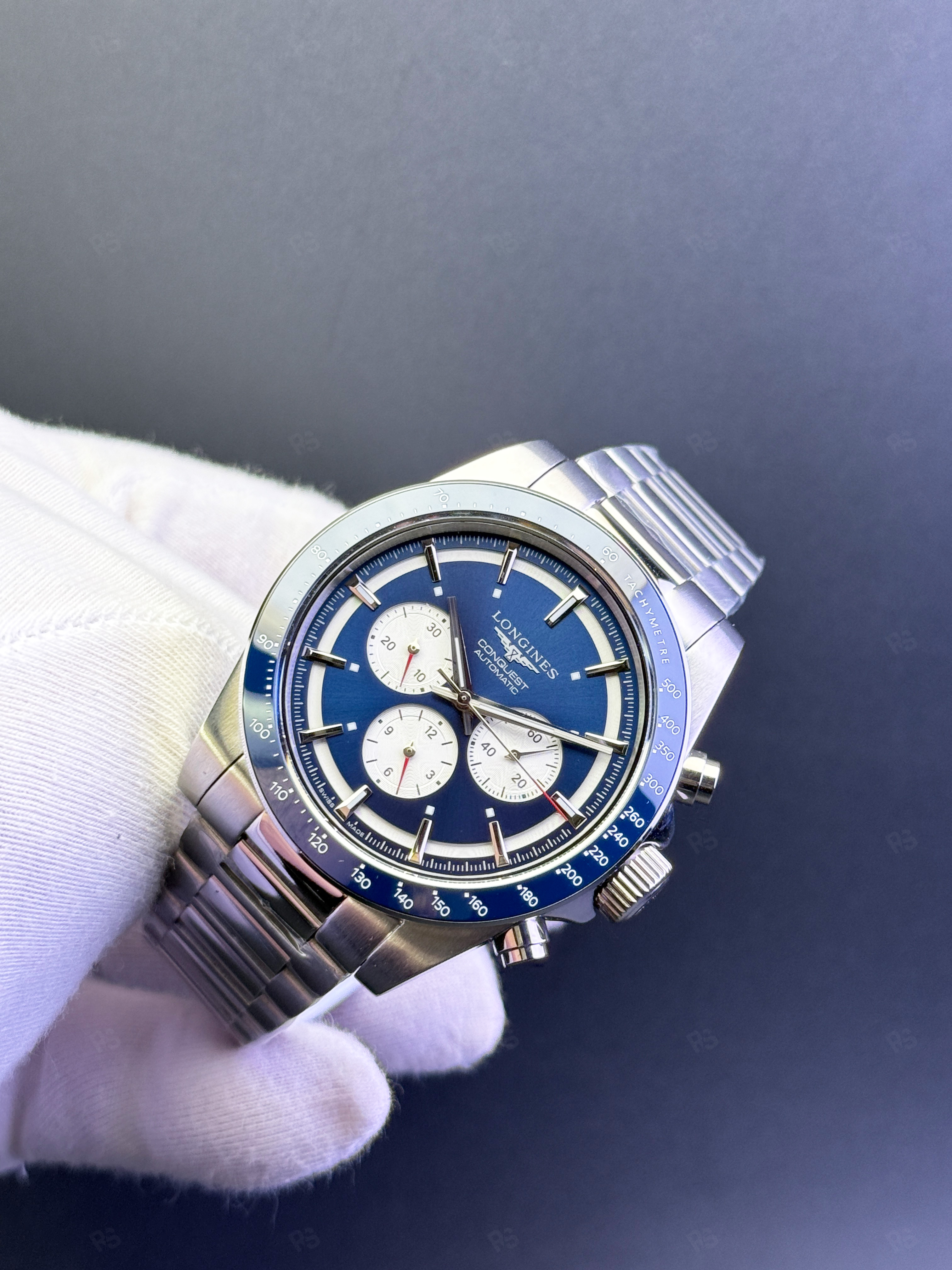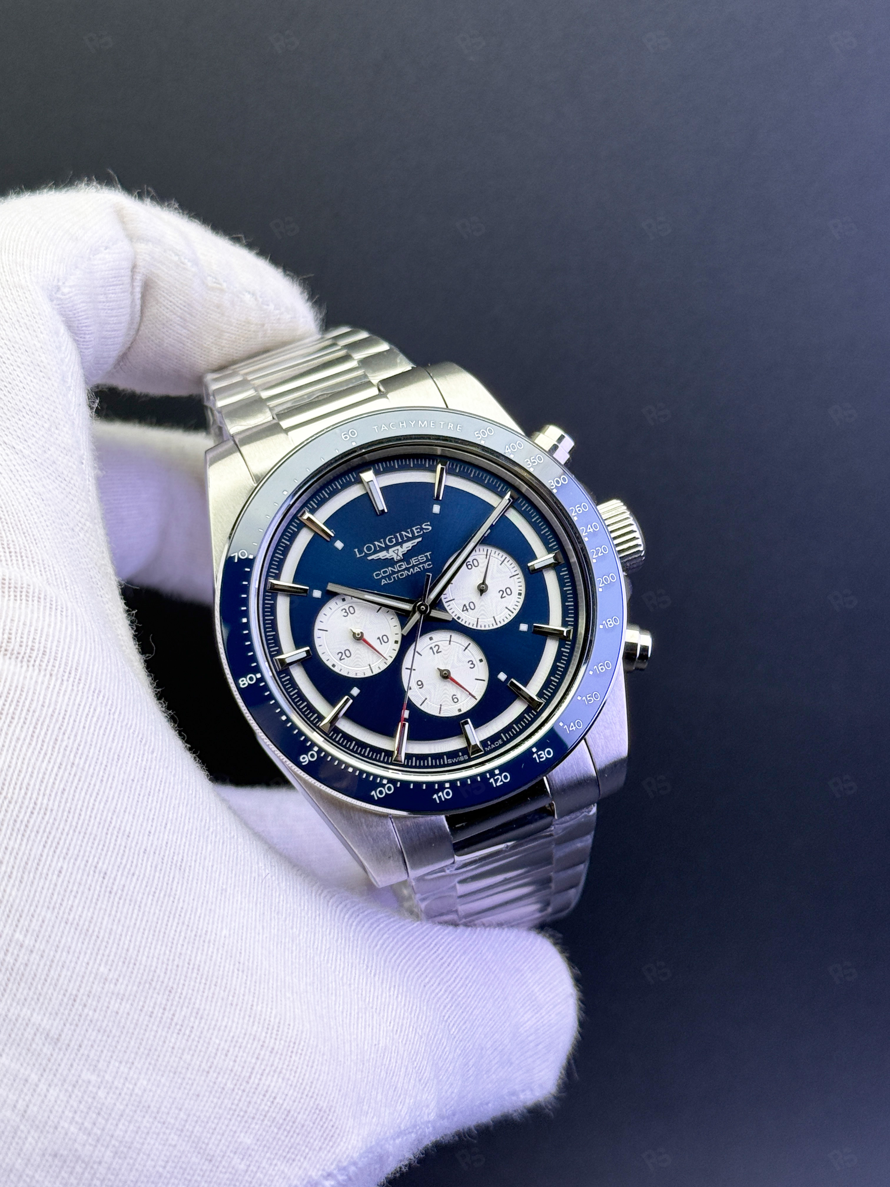• Tasarım: Sportif ve klasik, Longines Conquest stili, mavi bezel.