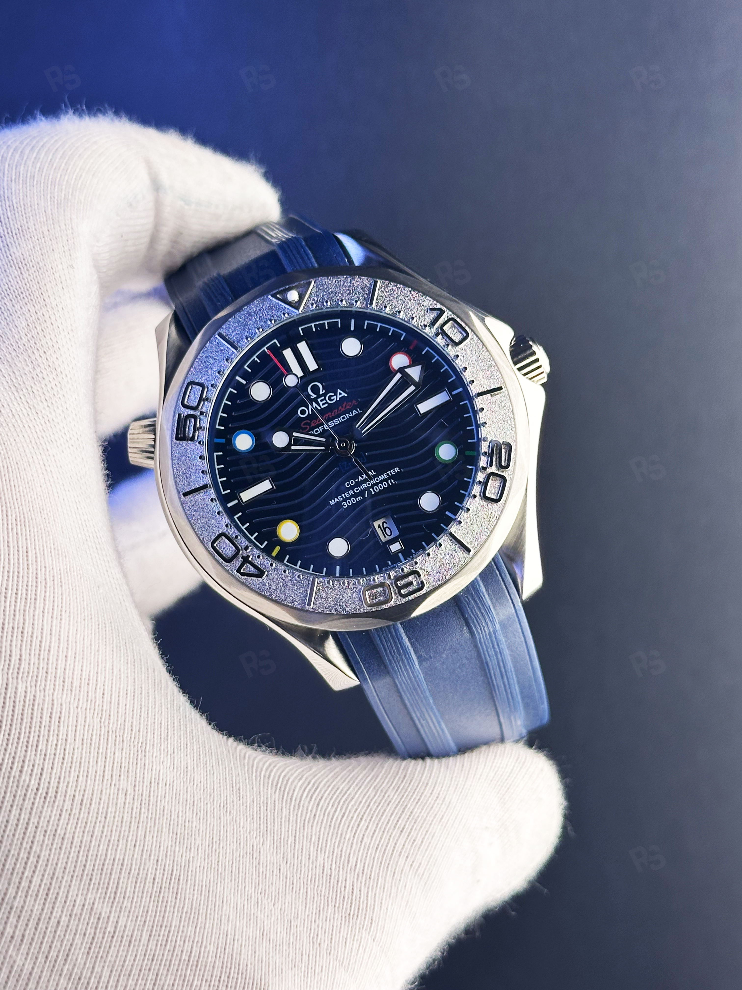 Omega Seamaster Diver 300M Otomatik Erkek Saat – Mavi Kadran & Silikon Kordon