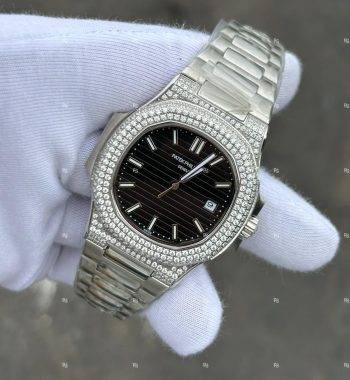 PATEK Philippe Swarovski Taşlı Kasa Siyah Kadran Erkek Saati