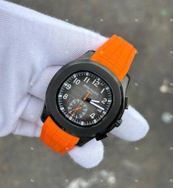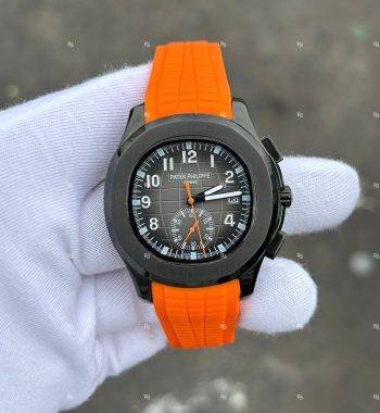 PATEK Philippe PVD Siyah Kasa Turuncu Silikon Kordon