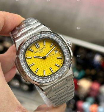 PATEK Philippe Nautilus 40MM Sarı Kadran Taşlı Bezel Unisex Kol Saati