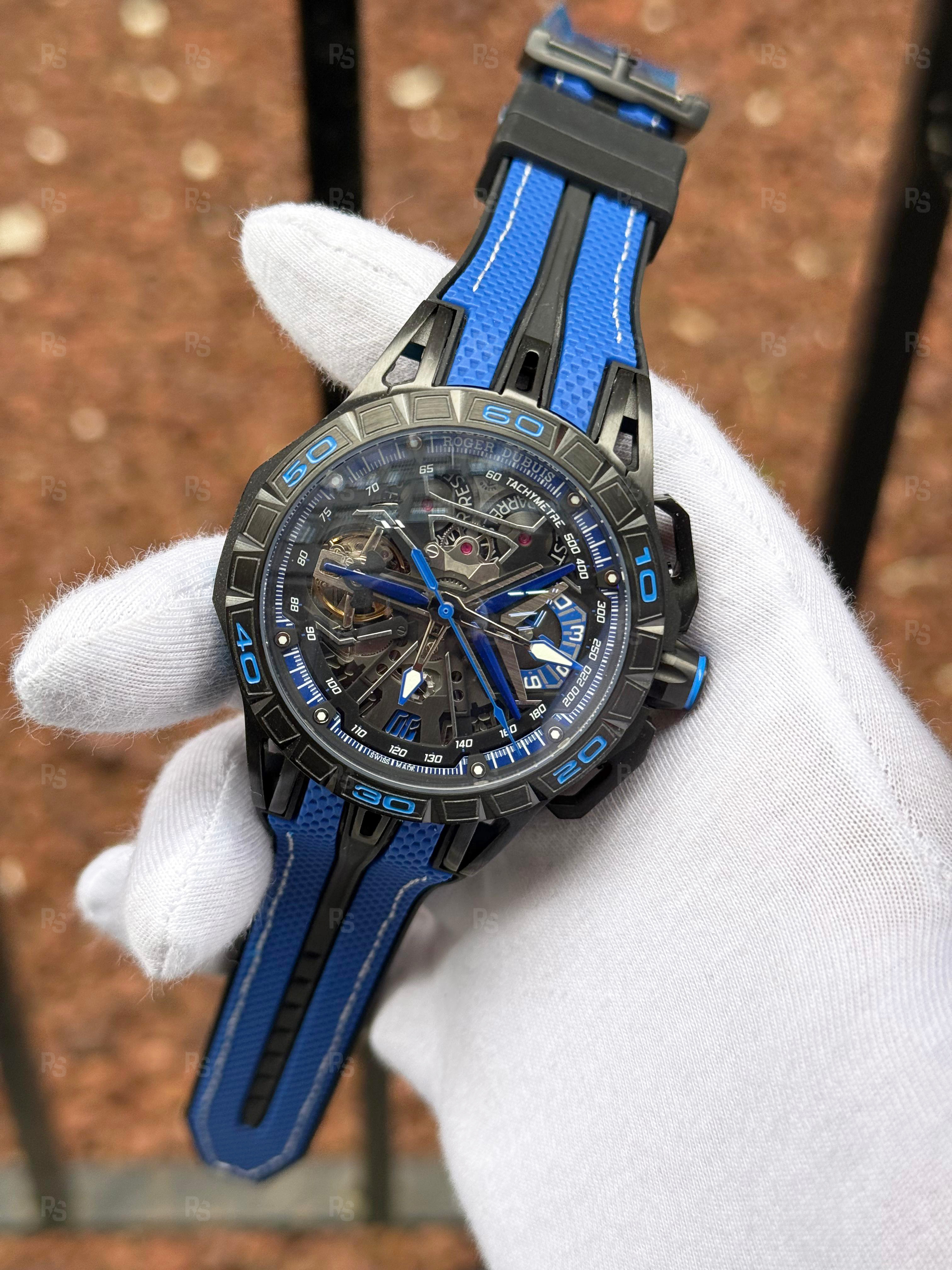 Roger Dubuis Excalibur Spider Mavi Erkek Saati 45mm Siyah PVD Çelik Kasa