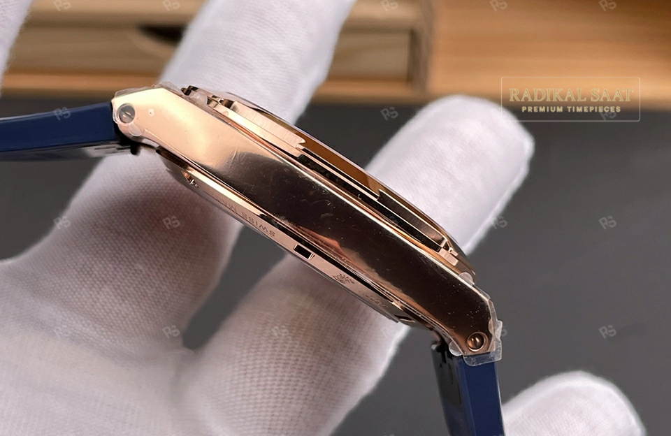 8F, rose gold kaplamanın kalitesi ve mavi kadranın derinliği konusunda Vacheron Constantin modellerinde uzmandır.